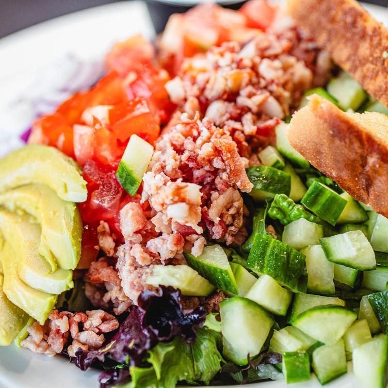 Salad Dressings: Lite Italian, Vinaigrette, Ranch, Caesar, Honey Mustard, Bleu Cheese, Sweet Vidalia Onion and Our House-Made Apple Balsamic Vinaigrette • Add to Any Salad: Hard Boiled Egg +$2.00 | Crumbled Bleu Cheese +$4.00 | Chicken +$6.00 | Steak +$9.00 | Salmon +$11.50 | Sauteed Shrimp +$8.00